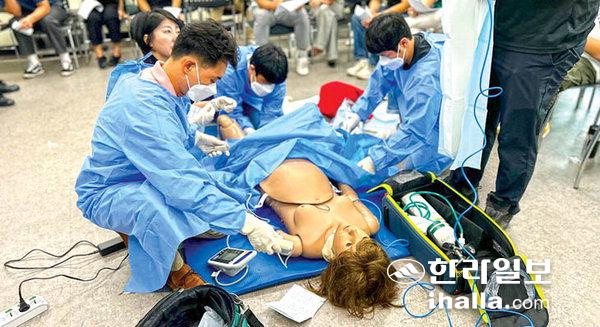 이번 교육은 구급차 내에서 응급분만 진행 시 산모와 신생아의 생명을 지킬 수 있도록 구급대원 분만 전문성을 강화하고자 추진됐으며 제주소방서 전문 구급교육 지도관 6명이 교육 강사로 나서 구급대원들을 지도했다.