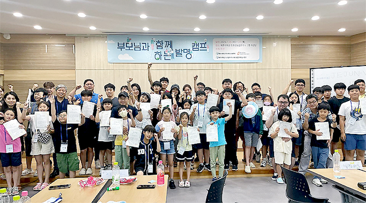 제주대학교 지식재산교육센터(센터장 김인중)가 지난달 26~27일 제주대 친환경농업연구소 3층 대강당에서 '부모님과 함께하는 발명캠프'를 개최했다.