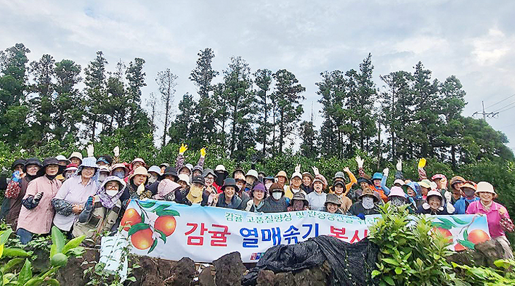 (사)한국여성농업인서귀포시연합회(회장 고옥금)는 지난달 31일 회원 80여명이 참석한 가운데 서귀포시 소재 농가 2곳에서 감귤 고품질 향상 및 안정 생산을 위한 감귤 열매솎기 봉사활동을 진행했다.