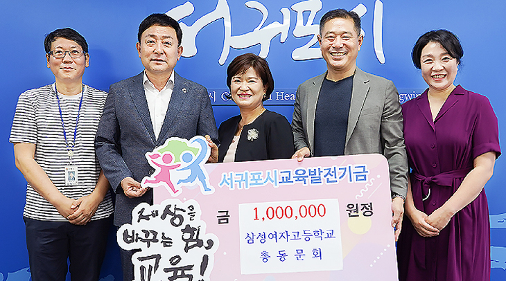 삼성여자고등학교 총동문회(회장 강창숙)는 지난달 31일 서귀포시청 접견실에서 (재)서귀포시교육발전기금(이사장 현봉식)에 서귀포시교육발전기금 100만원을 기탁했다.