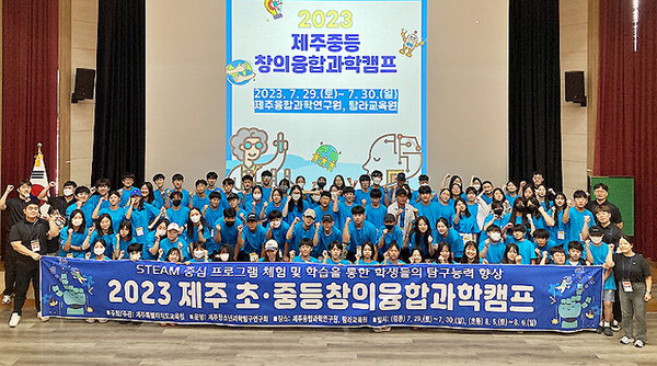 제주도교육청이 주최·주관하고 제주청소년과학탐구연구회(회장 조성배)가 운영하는 '2023 제주중등창의융합캠프'가 지난달 29~30일 중학생 30팀 90명이 참가해 제주융합과학연구원 등에서 열렸다. 이달 5~6일에는 초등학생 45팀 90명과 함께하는 제주초등창의융합과학캠프가 진행될 예정이다.