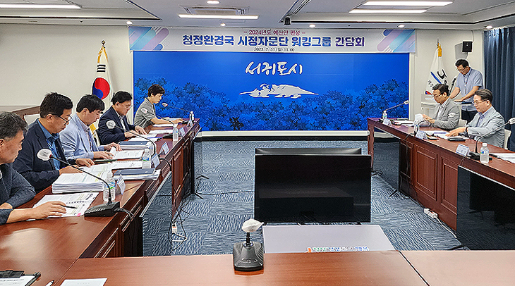 서귀포시 청정환경국(국장 김용춘)은 지난달 31일 시청 본관 셋마당에서 2024년도 예산 편성 시 시민들의 다양한 의견을 반영하기 위해 '청정환경국분야 시정자문단 워킹그룹' 자문회의를 개최했다. 이날 회의에서는 서귀포시 해양도립공원의 체계적 관리, 유휴공간을 활용한 공원 조성 등 환경분야 관련 다양한 의견이 제시됐다.