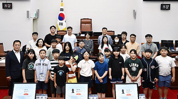 제주특별자치도의회(의장 김경학)는 1일 도의회 본회의장에서 동홍동 어린이주민자치위원 17명이 참여하는 청소년의회 의정체험 모의의회를 개최했다.