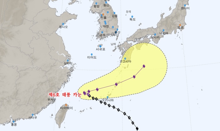 제6호 태풍 '카눈' 예상 진로도. 기상청 홈페이지 캡처