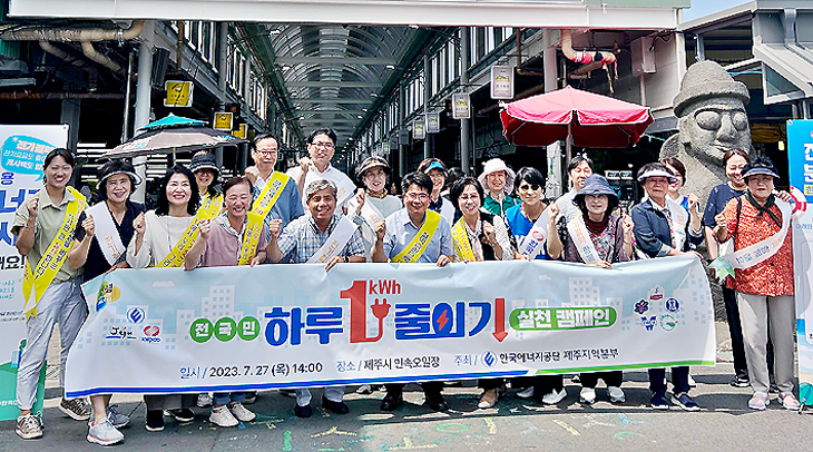 한국전력 제주본부(본부장 백남길)는 제주특별자치도청, 한국에너지공단 제주지역본부, 제주지역 소비자단체와 함께 지난달 27일 제주시내 오일장에서 하계 에너지 절감(하루 1kWh 줄이기) 공동 캠페인을 시행했다.