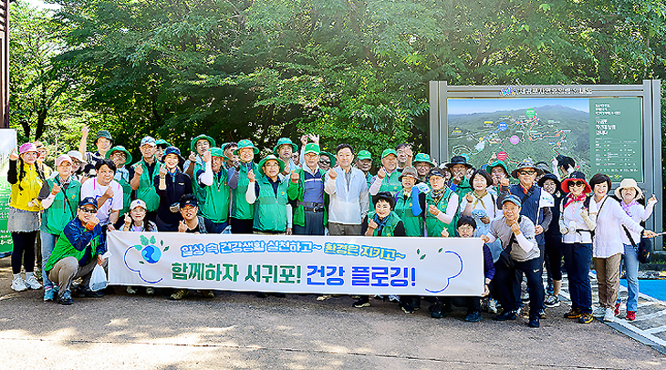 이날 플로깅은 서귀포자연휴양림을 시작으로 법정악 전망대를 거쳐 무오법정사까지 약 2시간 코스로 이뤄졌다.