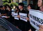 8일 제주도의회에서 제주도학부모총연합회가 '선생님들을 응원합니다'란 현수막을 내걸고 기자회견을 열고 있다. 강희만기자