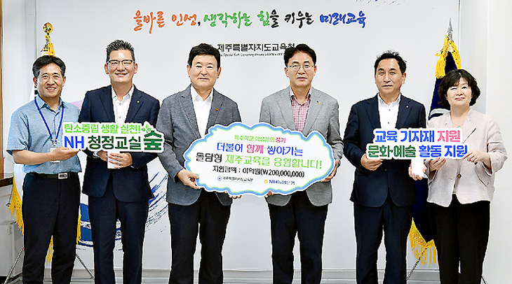 NH농협은행(은행장 이석용)은 지난 3일 제주특별자치도교육청(교육감 김광수)을 방문해 특수학교 학생들의 복지 향상을 위해 제주교육발전 지원금 2억원을 전달했다고 밝혔다. 이번 지원금은 도내 특수학교의 교육 환경과 여건을 개선하기 위해 학생들의 문화·예술활동 지원 등에 사용될 예정이다.