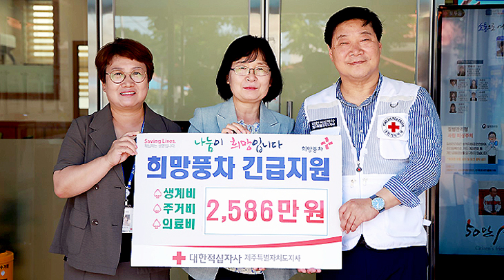 대한적십자사제주특별자치도지사(회장 정태근)는 지난 7일 긴급한 지원이 필요한 도내 위기가정 11가구에 생계비, 주거비, 교육비 등 2586만원을 지원했다.
