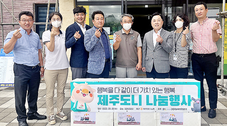 제주양돈농협(조합장 고권진)은 지난 9일 제주시 아라동에 위치한 아라요양원을 방문해 돼지고기 한 마리(80㎏ 상당)를 지원하는 나눔행사를 진행했다. 아라요양원 이정우 원장은 "입소 어르신들에게 여름철 건강한 돼지고기 식단을 제공할 수 있도록 도와준 양돈농협에 감사드린다"고 전했다.