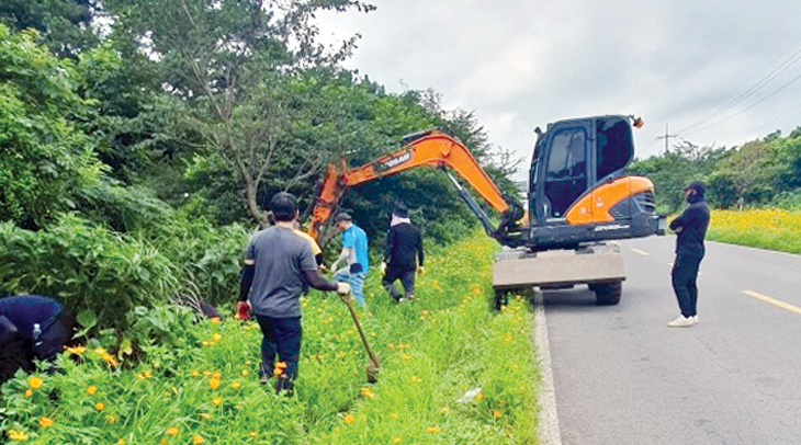 제주시 조천읍(읍장 양정화)은 최근 조천읍 연합청년회(회장 김성진) 회원 50여 명과 함께 녹산로 1.2㎞ 구간 양측 도로변에 수국을 식재했다. 이번 작업은 사계절 꽃 피는 제주 만들기 일환으로 이뤄졌다.