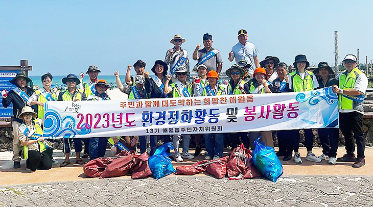 제주시 애월읍 주민자치위원회(위원장 고정학)와 애월읍(읍장 김기완)은 지난 12일 곽지해수욕장 일대에서 환경 정비 활동을 실시했다. 이날 참가자들은 해수욕장 주변 쓰레기를 수거한 뒤 오는 11월 개최되는 2023 애월읍 농·수·축 박람회 사전 홍보도 벌였다.