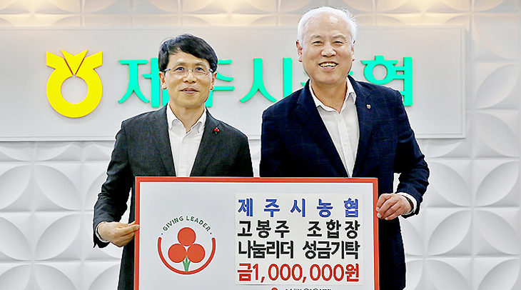 고봉주 제주시농협 조합장은 지난 22일 제주시농협에서 제주사회복지공동모금회(회장 강지언)가 진행하는 모금프로그램인 나눔리더에 성금 100만원을 기탁했다.