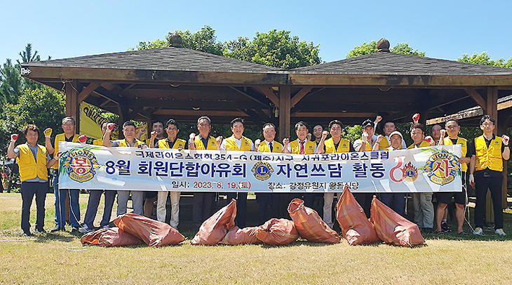 서귀포라이온스클럽(회장 김대윤) 라이온들은 지난 19일 야유회 시작에 앞서 강정유원지 주변에 환경정화 활동인 '자연쓰담' 봉사활동을 전개하며 이용객들을 위한 쾌적하고 깨끗한 환경을 조성했다.