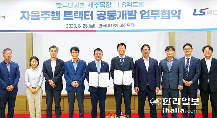 한국마사회 제주본부(본부장 문윤영)는 지난 25일 LS엠트론(트랙터사업본부장 이상민)과 말산업 현장 맞춤형 자율주행 트랙터 공동개발을 위한 업무 협약을 체결했다.