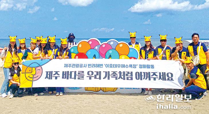제주관광공사(사장 고은숙)는 최근 '반려해변'으로 입양한 제주시 이호테우해수욕장에서 (주)포켓몬코리아(대표 임재범)와 합동으로 ESG 활동의 일환으로 해변 정화활동을 벌였다. 공사는 (주)포켓몬코리아와 지난 7월 지역관광 활성화 글로벌 프로젝트인 '하늘 나는 피카츄 프로젝트 in JEJU'도 협업한 가운데 제주의 원도심 활성화를 위해 피카츄 퍼레이드, 라이브쇼, 팝업스토어, 모바일 스탬프 투어 등을 선보이기도 했다.