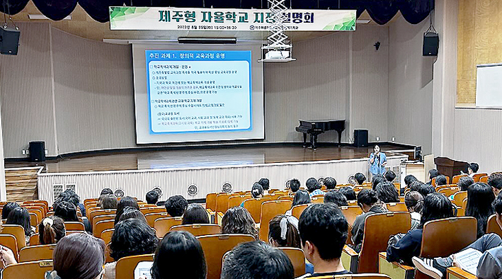 제주도교육청은 29일 탐라교육원 연수관 대강당에서 도내 각급학교 교직원과 학부모를 대상으로 '2024 제주형 자율학교 지정 설명회'를 개최했다. 2024 제주형 자율학교 신규 지정 학교 수는 10교 내외로 향후 신청 학교를 대상으로 자율학교심의위원회의 심의를 거쳐 교육감이 지정한다. 현재 지정 운영 중인 제주형 자율학교는 7개 유형 17교(초 14, 중 1, 고 2)다.