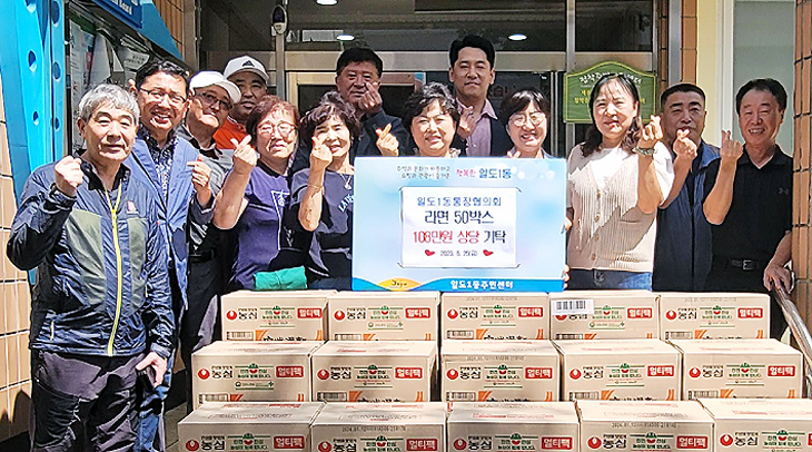 제주시 일도1동통장협의회(회장 이미영)는 지난 25일 일도1동(동장 오수원)에 어려운 이웃을 위한 라면 50박스(108만 원 상당)를 기탁했다.