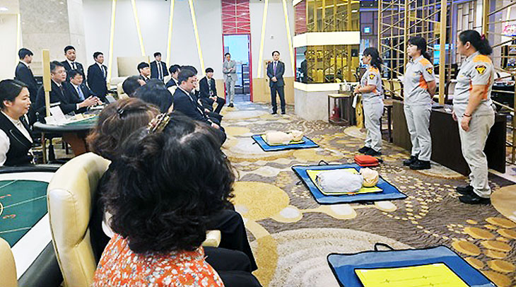 제주소방서 오라의용소방대(대장 백성철, 홍영심)는 지난 25일 제주오리엔탈 카지노 관계자 대상으로 응급처치 및 심폐소생술 교육 등 찾아가는 도민안전 교육을 실시했다. 이날 교육과 실습은 자동심장충격기 사용방법 및 마네킹 이용 직접 시연 등 맞춤형 교육으로 참가자의 응급 대응능력을 향상시켰다.