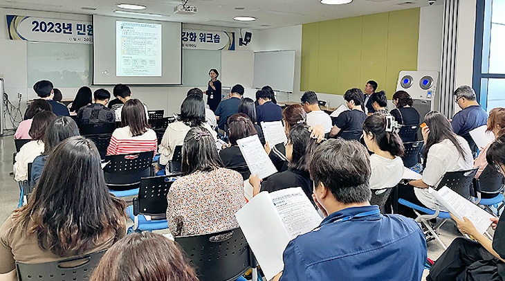 제주시는 지난 29일 본청과 읍·면·동 민원 담당 공무원 80여 명을 대상으로 벤처마루 세미나실에서 2023년 민원 업무 처리 전문성 강화를 위한 워크숍을 개최했다. 이날 제주120만덕콜센터 오선애 센터장을 초청해 민원인과의 공감 소통 요령을 듣고 민원 처리 단축을 위한 적극적인 업무 처리 방안 등을 모색했다.