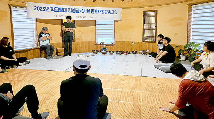 제주도교육청은 30일 학교 형태 평생교육시설 관계자와 자원 교사을 대상으로 '2023년 학교형태 평생교육시설 관계자 힐링 워크숍'을 개최했다. 이날 동려평생학교, 제주장애인야간학교, 서귀포오석학교 관계자들이 참석했다.