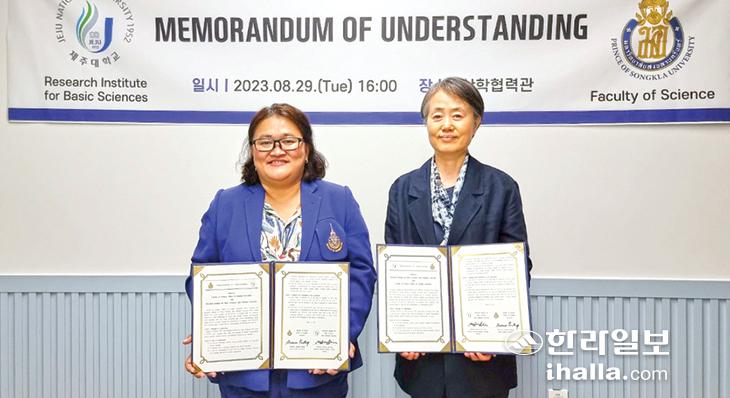 제주대학교 기초과학연구소(소장 김명숙)와 프린스송클라대학교 과학학부는 지난달 29일 해양바이오 분야 인재양성과 연구교류 활성화를 위한 업무협약을 체결했다.
