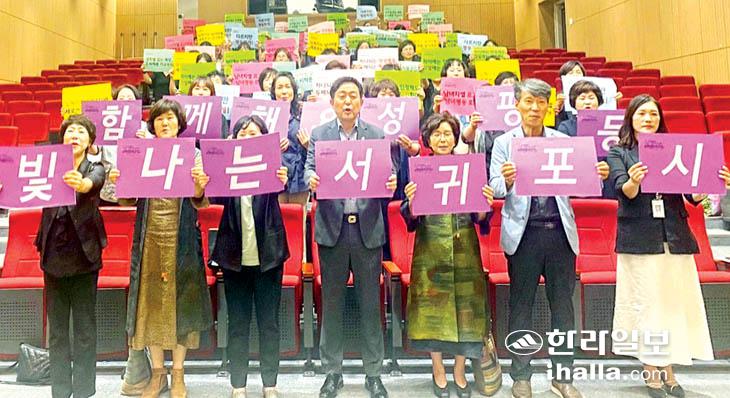 시와 서귀포시여성단체협의회(회장 김옥화)의 공동주관으로 이뤄진 이번 행사는 서귀포시니어클럽 가온예술단의 식전공연을 시작으로 기념사, 축사, 그리고 양성평등 및 여성권익 향상에 기여한 유공자 11명에 대한 표창패(훈격 서귀포시장)가 수여됐다.