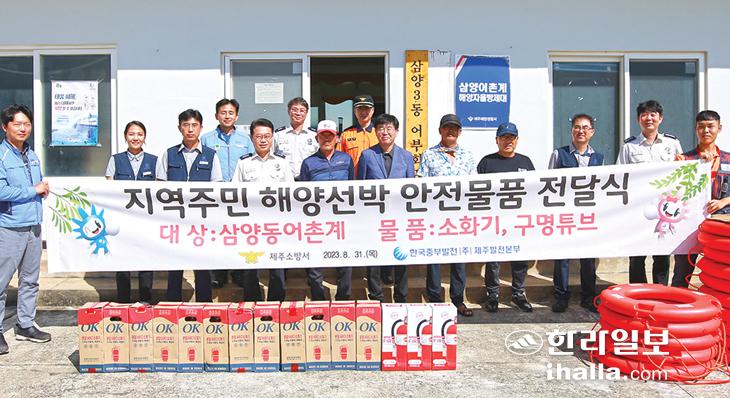 한국중부발전 제주발전본부(본부장 손성일)는 지난달 31일 지역주민의 안전한 어선 조업활동을 위한 소화기와 구명튜브를 전달했다.
