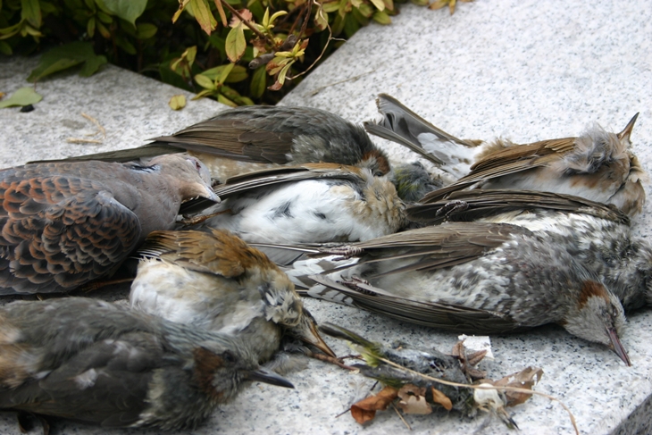 건물에 충돌해 죽은 야생조류. 제주자연의벗 제공