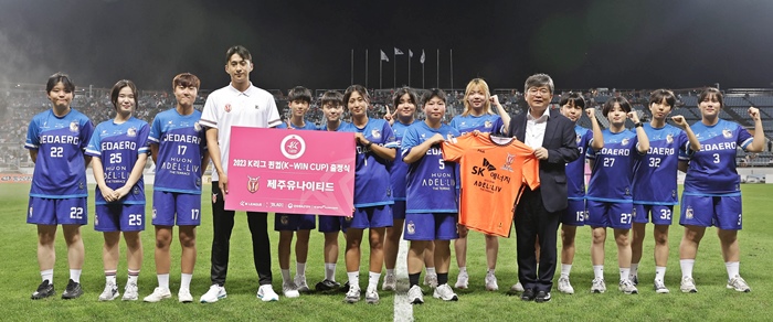 지난 3일 제주월드컵경기장에서 열린 제주대 '제대로' 퀸컵 출정식. 제주유나이티드 제공