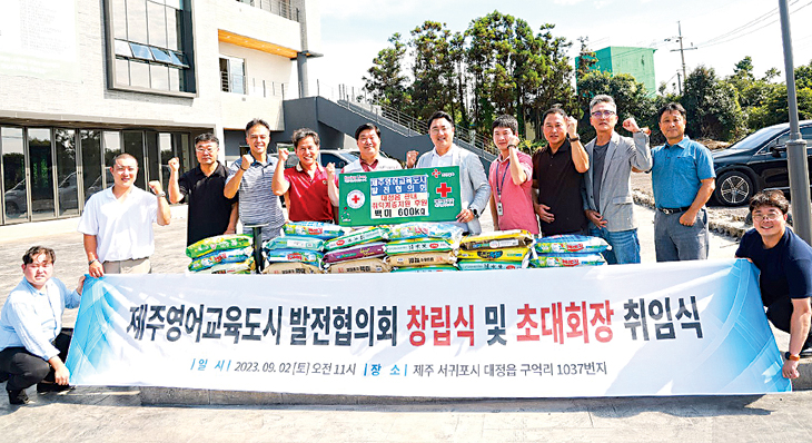이번 물품은 지난 2일 제주영어도시발전협의회 창립발대식 기념 축하 쌀화환과 회원들의 후원으로 마련됐다.