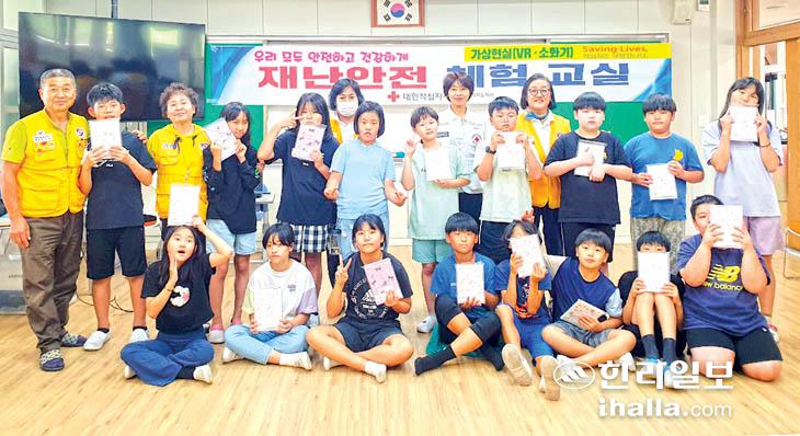 대한적십자사제주특별자치도지사(회장 정태근)는 최근 신산초등학교 4~5학년 학생 27명을 대상으로 재난에 대한 안전지식과 대처능력 향상, 안전문화 확산을 위한 '찾아가는 재난안전체험교실'을 운영했다.