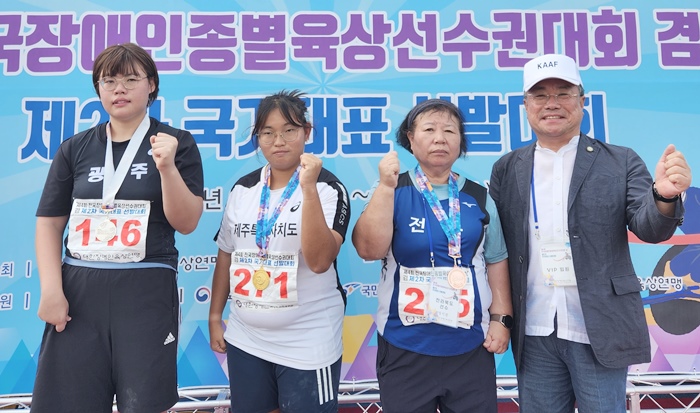 장애인 육상 F37 포환던지기에서 한국신기록을 세운 강별(왼쪽에서 두번째).