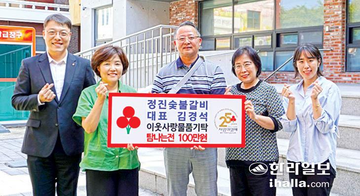 정진숯불갈비(대표 김경석)는 지난 11일 삼도1동주민센터를 방문해 100만원 상당의 탐나는전을 제주사회복지공동모금회(회장 강지언)에 기탁했다.