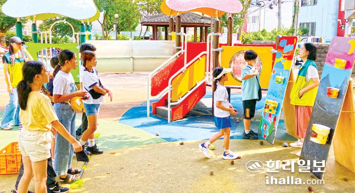 초록우산 어린이재단 제주종합사회복지관(관장 신경근)은 지난 9일 38호 어린이공원에서 반짝놀이터를 진행했다.