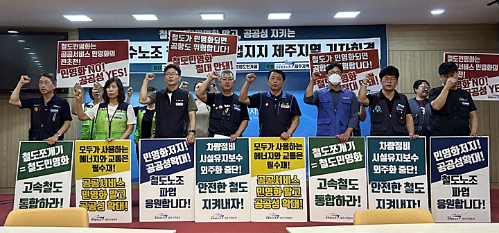 민주노총 공공운수노조 제주지역본부가 15일 제주도의회 도민의방에서 기자회견을 하고 있다. 이상민 기자