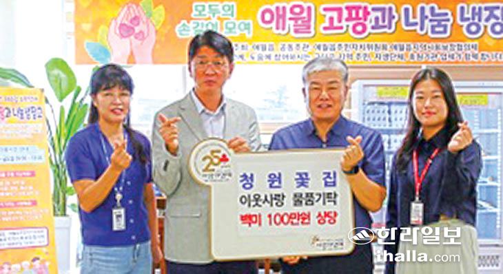 청원꽃집(대표 양경택)은 지난 19일 애월읍사무소(읍장 김기완)에서 추석명절을 맞아 100만원 상당 백미를 제주사회복지공동모금회(회장 강지언)에 기탁했다.