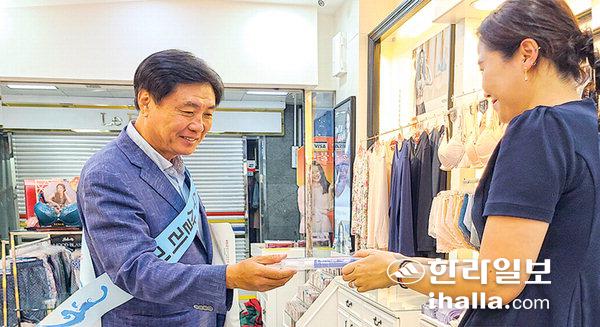 이날 캠페인에는 성상훈 중소기업중앙회 제주중소기업회장, 박경석 광주전남중소벤처기업청 제주수출지원센터장, 김지훈 중소벤처기업진흥공단 제주본부장, 이태윤 소상공인시장진흥공단 제주센터장 등이 참여해 중앙로 지하상점가와 칠성로 상점가 소상공인들의 애로사항을 청취하고 노고를 격려했다.