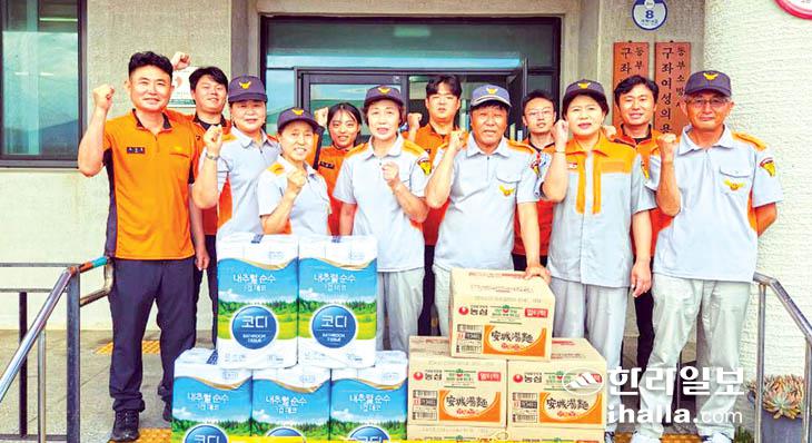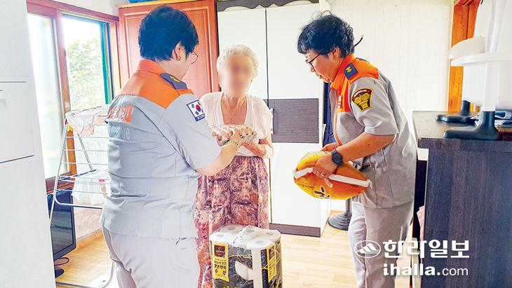 제주동부소방서 성산여성의용소방대(대장 홍재영)는 최근 추석을 맞아 지역 내 홀로 사는 어르신 가구를 방문해 쌀, 화장지, 계란 등 생필품을 전달하고 안부를 확인했다.