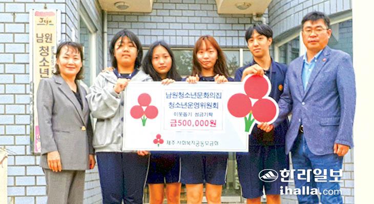 서귀포시 남원청소년문화의집 청소년운영위원회에서는 추석을 맞아 최근 어려운 이웃을 돕기 위한 청소년 벼룩시장 운영 수익금을 남원읍(읍장 현은정)에 전달하는 기부 활동을 펼쳤다.