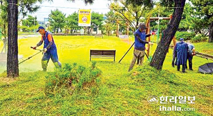 제주시 용담2동주민센터(동장 황태훈)와 바르게살기용담2동협의회(회장 유재호)는 지난 20일 회원 15명이 참석한 가운데 용담체육공원 일대에 대한 풀베기 등 환경정비를 실시했다.