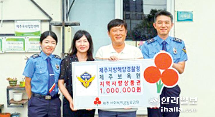 제주지방해양경찰청(청장 한상철)은 지난 19일 제주보육원(원장 강지영)에서 추석명절을 맞아 지역사랑상품권 100만원을 제주사회복지공동모금회(회장 강지언)에 기탁했다.