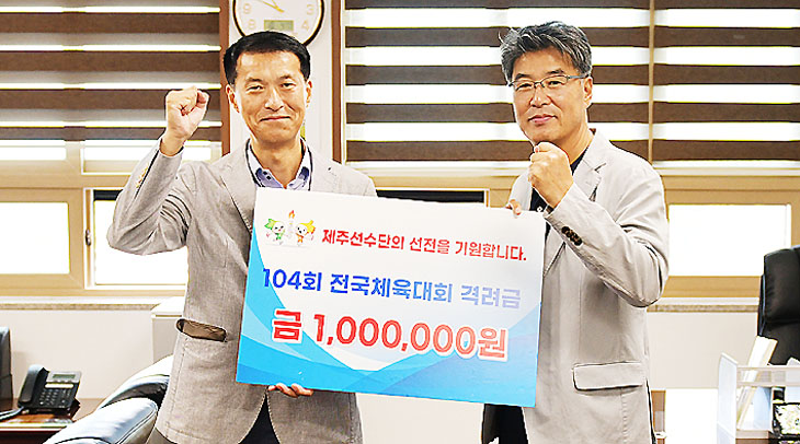 LX 한국국토정보공사 제주지역본부(본부장 이화영)는 4일 제주도체육회관에서 제104회 전국체육대회 참가 선수단에 격려금 100만원을 전달하고 선전을 당부했다.