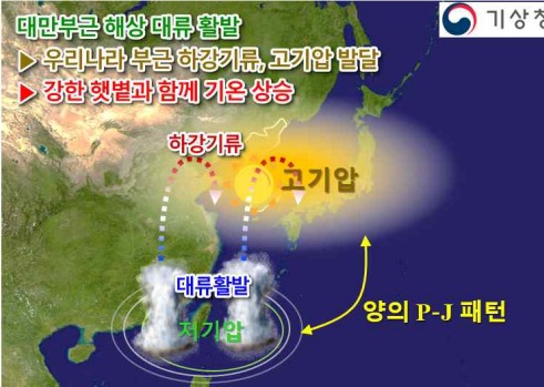 기상청은 "올해 9월 상순 대만 부근 해상에서 열대저기압에 의한 대류 활동이 강했을 뿐만 아니라 그 북쪽으로 하강기류가 발달하면서 우리나라 동서쪽으로 폭넓게 고기압이 형성됐고, 여기에 강한 햇볕이 더해져 기온이 크게 올랐다"고 설명했다.