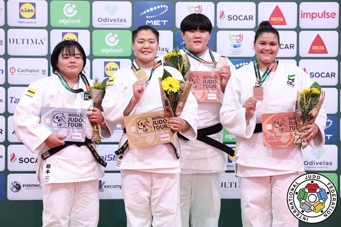포루투갈에서 열린 2023세계청소년유도선수권대회 +78kg급에서 동메달을 획득한 이현지 선수(오른쪽에서 두번째). 세계유도연맹 제공