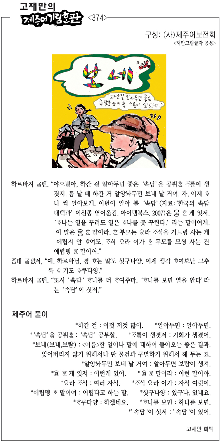 [고재만의 제주어기림혼판] 제주어 풀이(460)