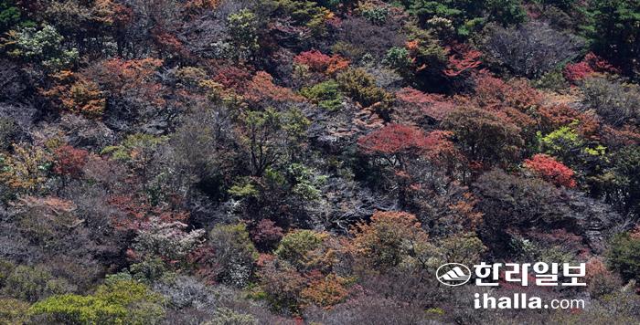 17일 한라산 영실등반로에 울긋불긋한 단풍이 서서히 물들기 시작해 장관을 이루고 있다. 강희만