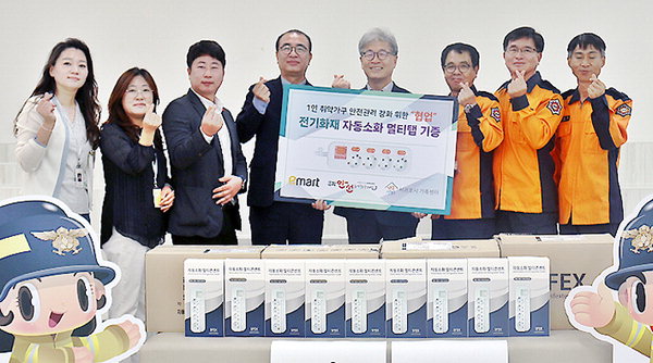 이마트서귀포점(점장 김정근), 서귀포소방서(서장 박광찬), 서귀포시가족센터(센터장 이상구)는 18일 서귀포시가족센터에서 1인 취약가구에 대한 안전관리 강화를 위해 '전기화재 예방 자동소화 멀티탭'기증행사를 가졌다.