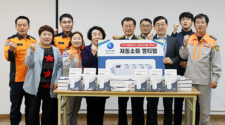 제주서부소방서(서장 고정배)와 제주LNG본부(본부장 황동안)는 18일 애월읍 소재 사회복지법인 한라원에서 노유자 시설 전기화재 예방을 위한 화재안전물품(자동소화멀티탭) 기증식을 개최했다.