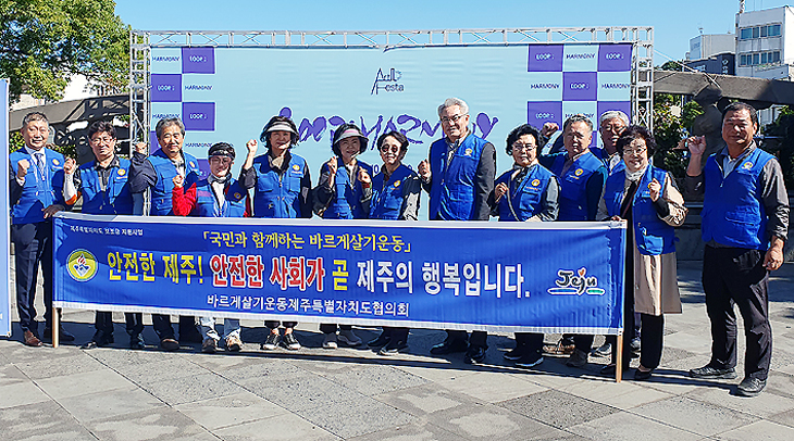 바르게살기운동 제주특별자치도협의회(회장 좌중언)는 18일 탐라문화광장 일대에서 임원 20여명이 참여해 안전한 제주, 안전문화 정착을 위한 홍보 캠페인을 전개했다.